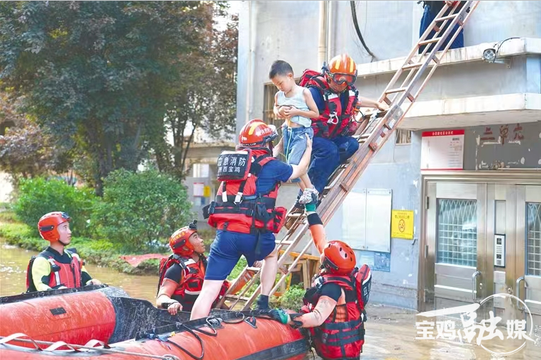 灾情面前,我们风雨同舟、齐心协力,凝聚不屈力量。分秒必争的生命竞速中,我们看到黑夜里洪水漫过腰间却义无反顾舍生救护群众的身影,我们听到满身泥水、连夜奋战仍无怨无悔喊出“让我上”的铿锵话语,我们目睹救生梯上、救援艇上被救群众微笑致谢的脸庞。一幕幕感动人心的救援场景,一个个挺身而出的平凡英雄,展现出宝鸡人心连心、肩并肩战胜暴雨灾情的必胜信心。
