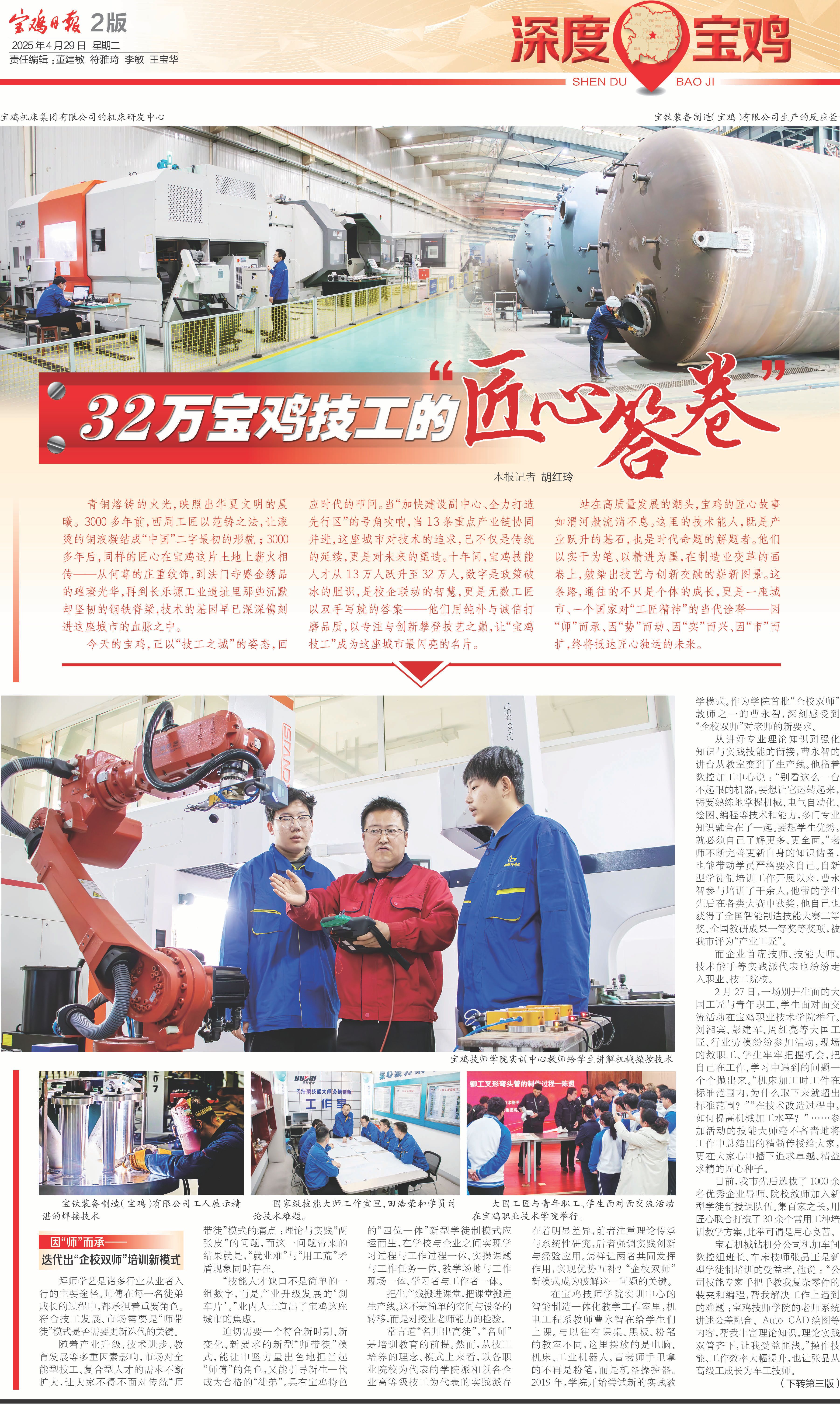 站在高质量发展的潮头,宝鸡的匠心故事如渭河般流淌不息。这里的技术能人,既是产业跃升的基石,也是时代命题的解题者。他们以实干为笔、以精进为墨,在制造业变革的画卷上,皴染出技艺与创新交融的崭新图景。这条路,通往的不只是个体的成长,更是一座城市、一个国家对“工匠精神”的当代诠释——因“师”而承、因“势”而动、因“实”而兴、因“市”而扩,终将抵达匠心独运的未来。