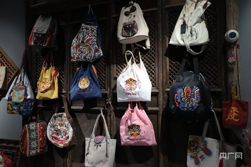社火脸谱文创背包(央广网记者 侯凯奇 摄)
