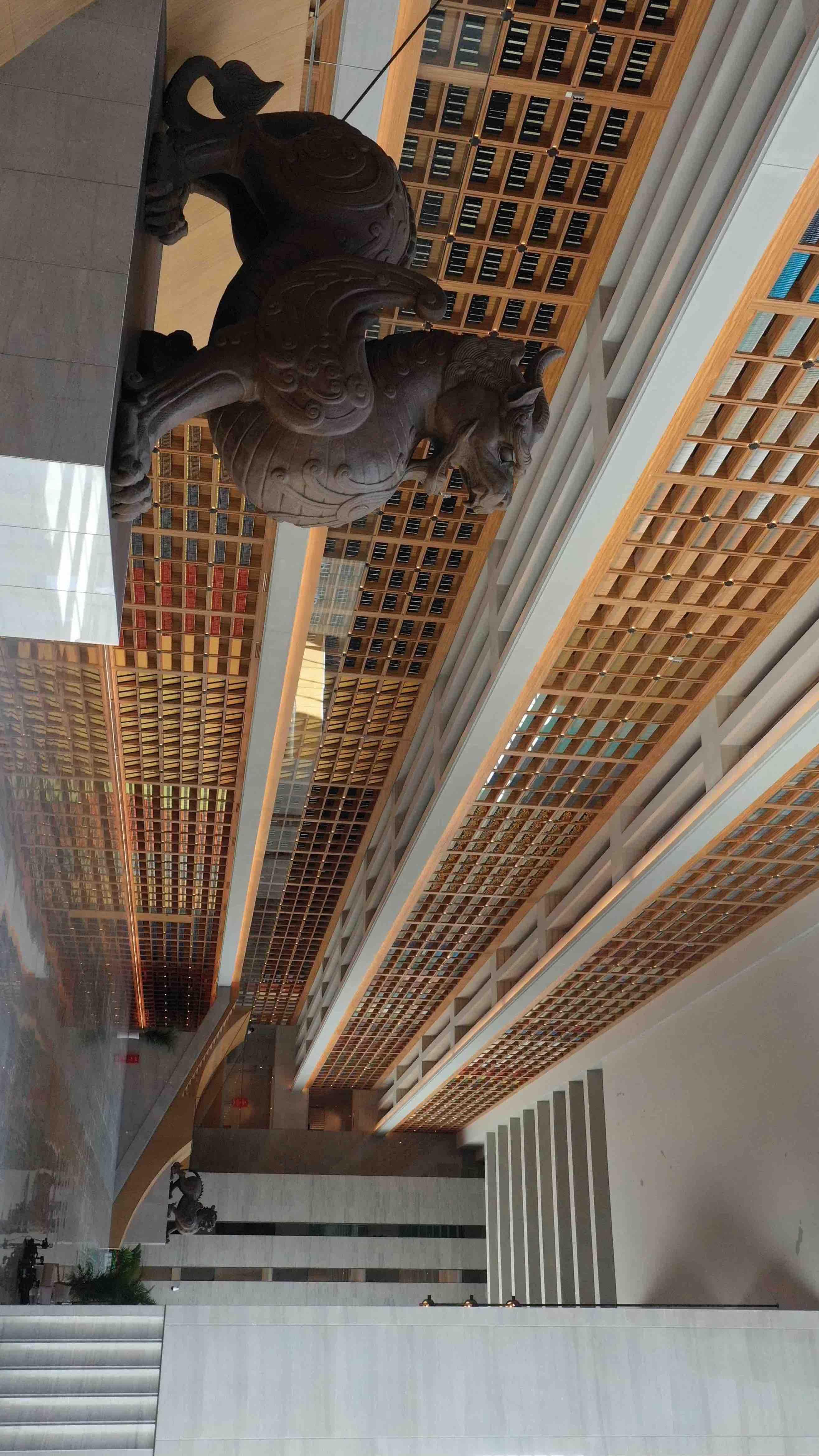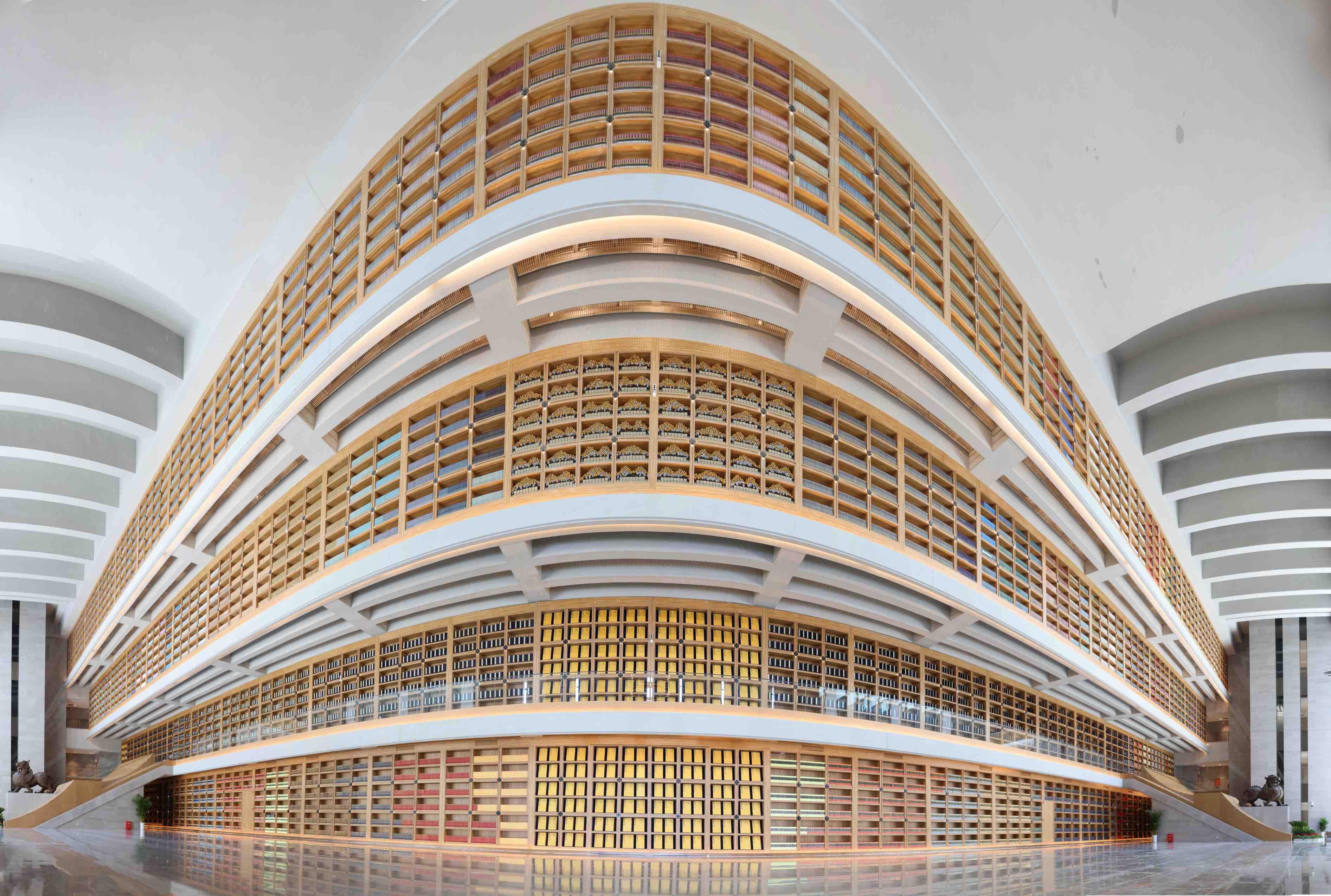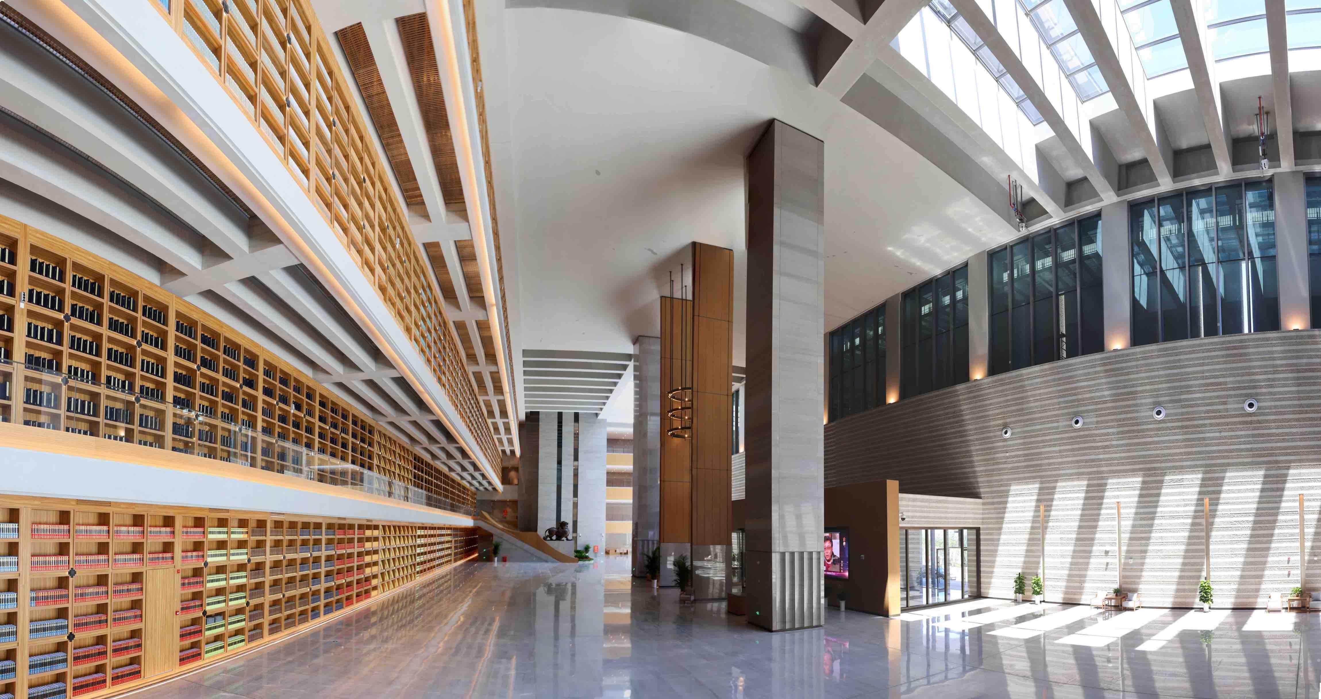 西安国家版本馆(中国国家版本馆西安分馆)南倚秦岭,北望渭河,占地约300亩,总建筑面积8.25万平方米,主体为高台建筑,呈现出大气磅礴的汉唐风格。