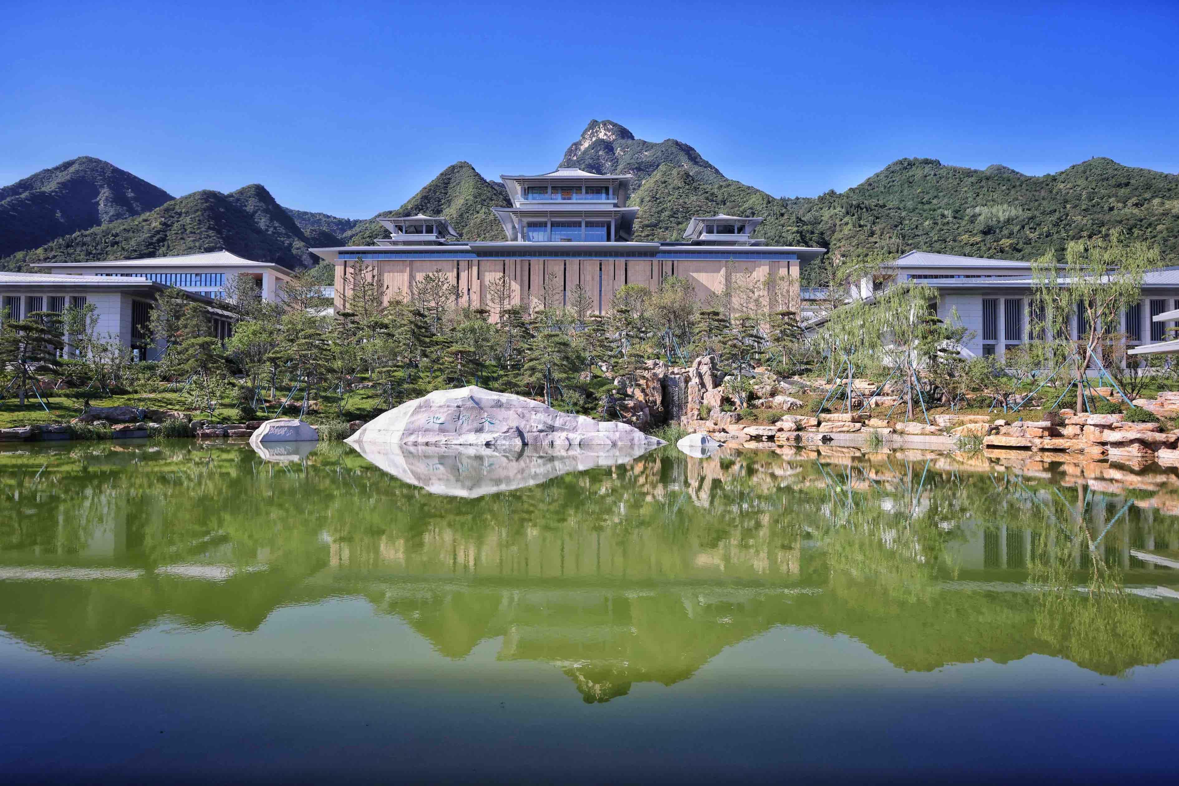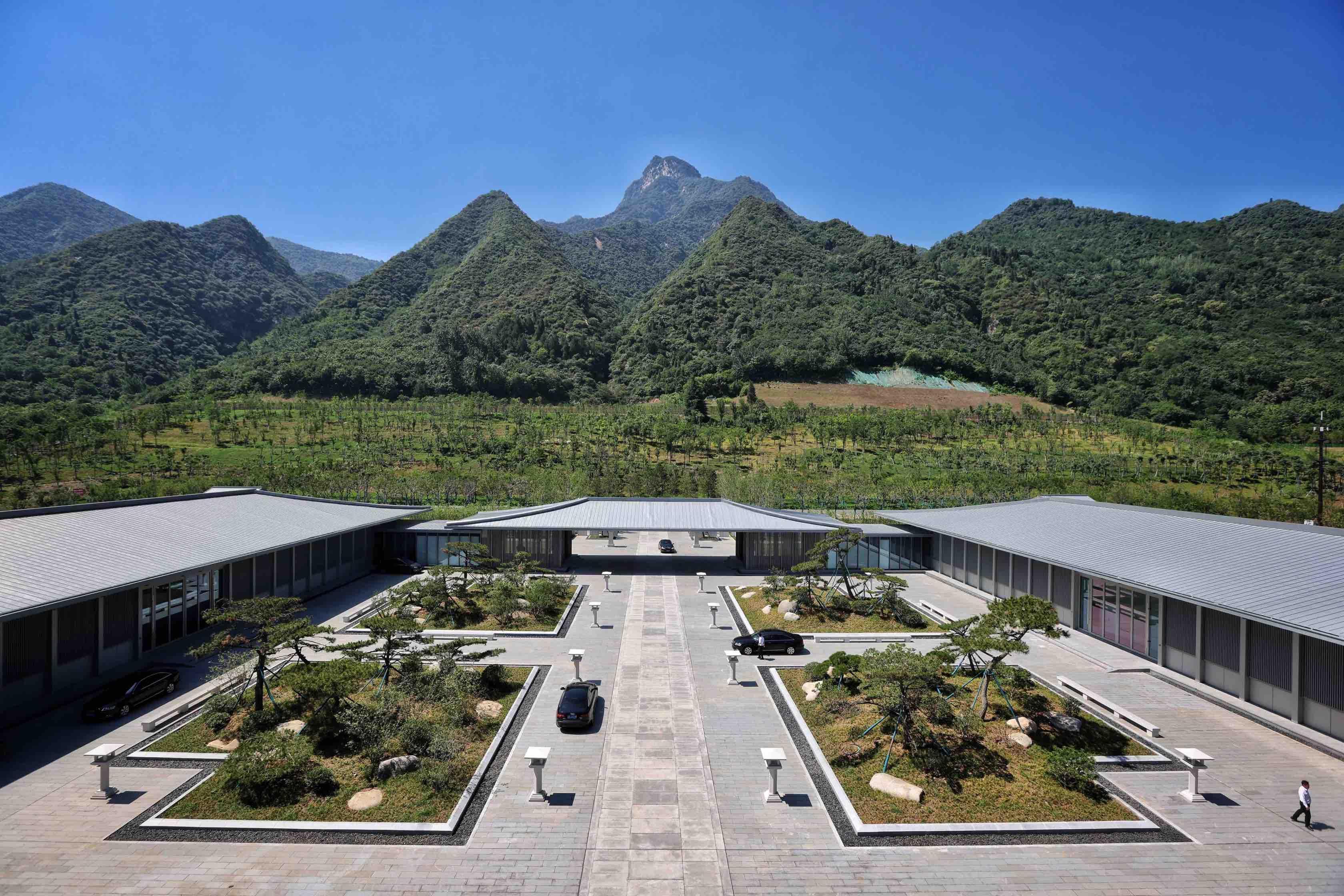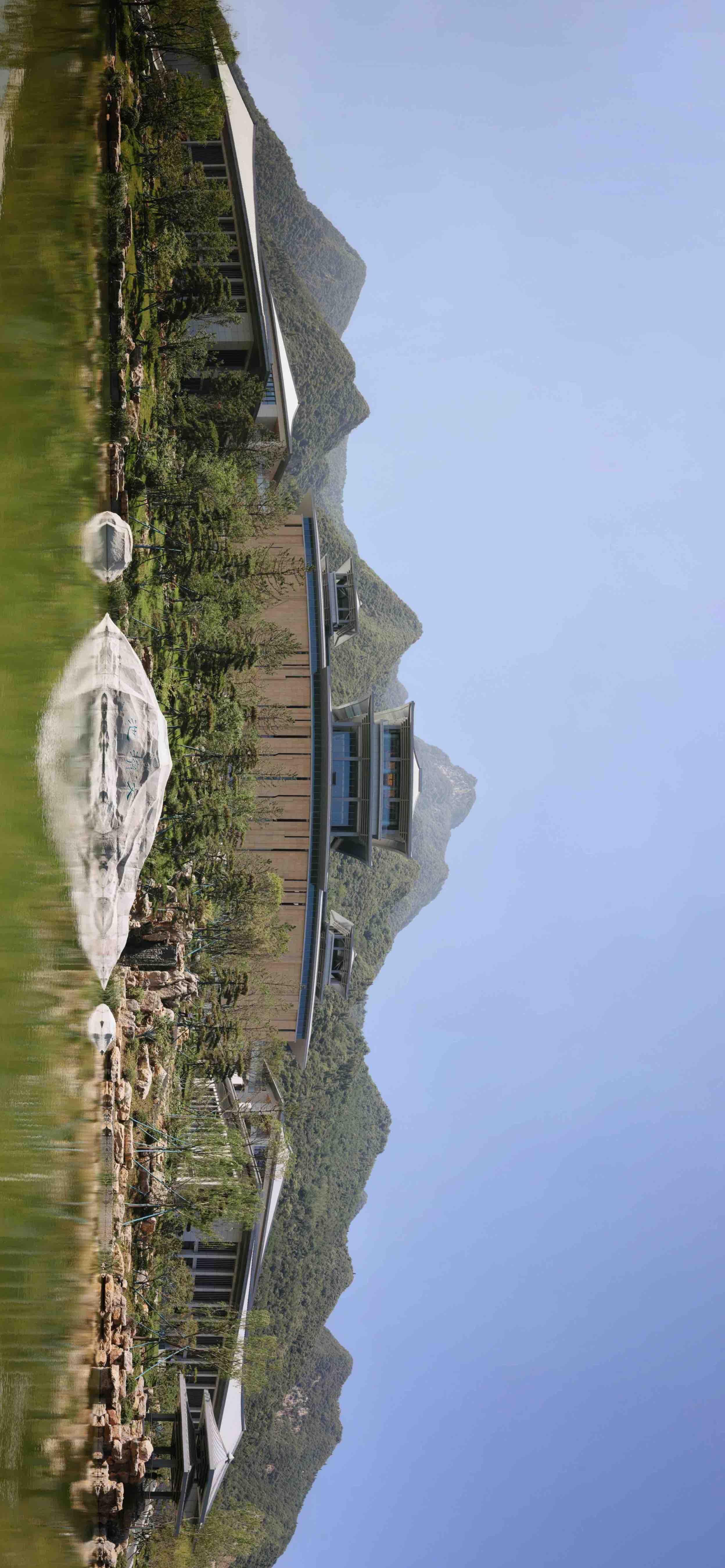 西安国家版本馆(中国国家版本馆西安分馆)南倚秦岭,北望渭河,占地约300亩,总建筑面积8.25万平方米,主体为高台建筑,呈现出大气磅礴的汉唐风格。